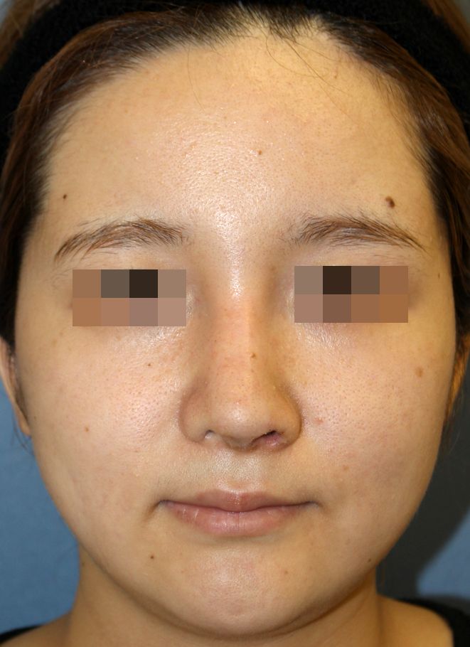 術前の正面です。 韓国で鼻中隔延長術+隆鼻術を受けられましたが、 左鼻孔の吊り上がり、鼻柱部の盛り上がり、プロテーゼの形の不満から当院で修正を行いました。 鼻柱部分も左に不自然な突出があり修正希望されました。 左鼻孔縁形成術+他院鼻中隔延長術+ 他院鼻プロテーゼ入れ替え術+眉間プロテーゼ手術後2週間の経過写真です。 術後の腫れが随分落ち着いてきました。 術後は眉間から鼻筋が通りました。 左の鼻孔縁も下がり鼻孔が見えにくくなりました。 手術前の斜めからです。 手術後2週間の斜めからです。 術後はおでこから鼻先にかけて自然な流れができています。 鼻孔縁も降りています。 手術前の横からです。 手術後2週間の横からです。 術後は眉間からの流れができて自然な形態となりました。 鼻柱部分の形態の不満もなくなりました。 移植片も生着良好で順調な経過です。 ・費用(税込、麻酔代別) 鼻孔縁形成術 ¥550,000 鼻中隔延長術 ¥660,000 他院鼻プロテーゼ入れ替え術 ¥440,000 眉間プロテーゼ ¥330,000 ・リスク・副作用(起こり得る可能性のあること) 腫れ、内出血、鼻出血、鼻づまり 鼻柱の傷跡 鼻先、耳介の知覚低下 鼻の傾き 鼻尖部の挙上ができない 鼻の形の左右差 プロテーゼの動揺 鼻孔の左右差 鼻先、鼻孔の周辺が硬くなる、厚くなる 鼻孔縁形成術 鼻中隔延長術 鼻プロテーゼ入れ替え術 眉間プロテーゼ にほんブログ村 美容外科ブログランキングへ