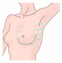 外側皮枝は中腋窩線というラインを目安に現れます。