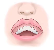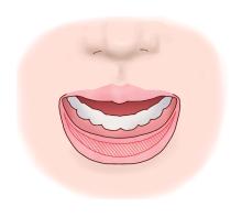 唇のwet-dry junctionのところで皮膚粘膜を切除します。