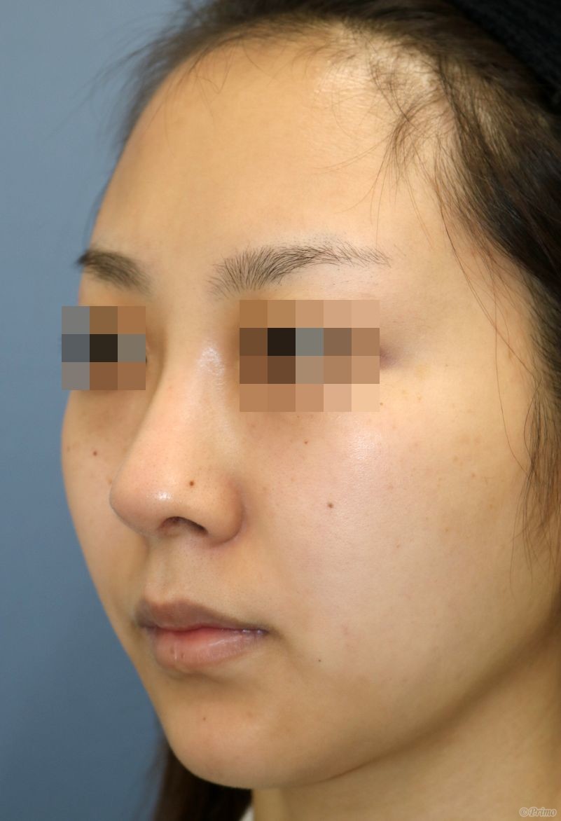 手術前の正面です。 術前は他院で入れたシリコンプロテーゼが曲がって入っていました。 修正を希望され当院で鼻中隔延長術+他院鼻プロテーゼ入れ替え術+眉間プロテーゼ手術を行いました。 鼻中隔延長術+他院鼻プロテーゼ入れ替え術+眉間プロテーゼ手術後2ヶ月の経過写真です。 術後は鼻筋がまっすぐに通りました。 手術前の斜めからです。 手術後2ヶ月の斜めからです。 術後はゴアテックス製プロテーゼによって鼻筋が自然になりました。 手術前の横からです。 手術後2ヶ月の横からです。 術前に不自然に高かった鼻根部が、 術後は鼻プロテーゼ入れ替え術によって鼻根部にアクセントがしっかりとできました。 ・費用(税別、麻酔代別) 鼻中隔延長術 ¥600,000 他院鼻プロテーゼ入れ替え術 ¥400,000 眉間プロテーゼ ¥300,000 他院修正術 ¥300,000 ・リスク・副作用(起こり得る可能性のあること) 腫れ、内出血、鼻出血、鼻づまり 鼻柱の傷跡 鼻先、耳介の知覚低下 鼻の傾き 鼻尖部の挙上ができない 鼻の形の左右差 プロテーゼの動揺 鼻中隔延長術 眉間プロテーゼ にほんブログ村 美容外科ブログランキングへ Tags:他院鼻プロテーゼ入れ替え術眉間プロテーゼ鼻プロテーゼ入れ替え術鼻中隔延長術