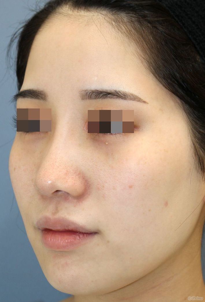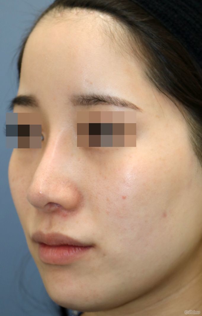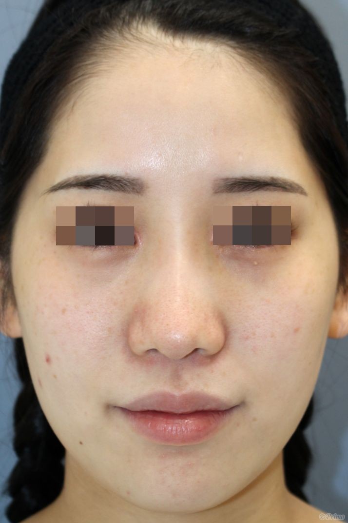 手術前の正面です。 前額プロテーゼ手術、鼻中隔延長術、他院鼻プロテーゼ入れ替え術、眉間プロテーゼ、整鼻術、鼻翼縮小術(小鼻縮小術)内側法手術後6ヶ月の経過写真です。 術後は前額プロテーゼの効果によっておでこが丸く柔らかい印象になりました。 整鼻術(鼻骨骨切り幅寄せ)、鼻翼縮小術(内側法)により鼻の横幅が狭くなりました。 鼻中隔延長術によって鼻柱が下りました。 手術前の斜めからです。 手術後6ヶ月の斜めからです。 前額プロテーゼの効果でおでこが斜めからも丸い感じにでました。 手術前の横からです。 手術後6ヶ月の横からです。 術後は眉間プロテーゼ、鼻プロテーゼ入れ替え術によって鼻根部にアクセントができ、 自然な流れになりました。やや長すぎた鼻も適度なバランスになりました。 鼻中隔延長術によって鼻先の形態も改善しました。 手術前の下からです。 手術後6ヶ月の下からです。 オープンアプローチ、鼻翼縮小術(内側法)の傷跡も目立ちません。 ・費用(税別、麻酔代別) 前額プロテーゼ ¥400,000 特別注文プロテーゼ +¥200,000 (実体モデル作成費含む) 鼻中隔延長術 ¥600,000 他院鼻プロテーゼ入れ替え術 ¥400,000 眉間プロテーゼ ¥300,000 整鼻術 ¥600,000 鼻翼縮小術(内側法) ¥300,000 他院修正術 ¥300,000 ・リスク・副作用(起こり得る可能性のあること) 腫れ、内出血、傷跡、血種 鼻出血、鼻づまり 感覚異常 埋没した吸収糸の露出 左右差 プロテーゼの動揺、位置異常 骨吸収 鼻の傾き 鼻尖部の挙上ができない 前額プロテーゼ 鼻中隔延長術 眉間プロテーゼ 整鼻術 鼻翼縮小術 にほんブログ村 美容外科ブログランキングへ Tags:前額プロテーゼ整鼻術眉間プロテーゼ鼻プロテーゼ入れ替え術鼻中隔延長術鼻翼縮小術鼻骨骨切り術