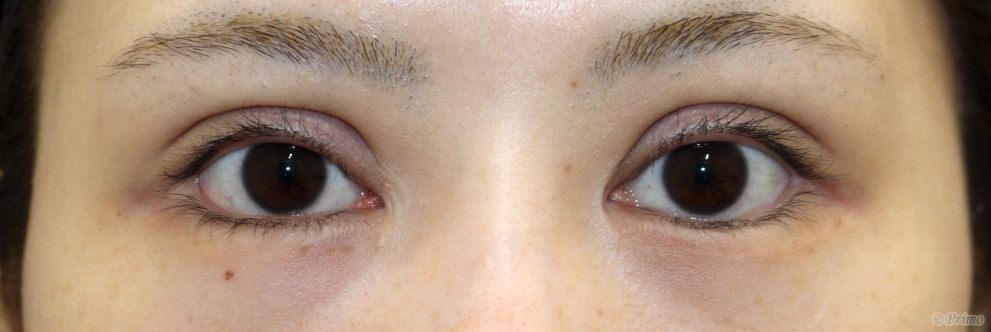 術後は二重幅が広くなり、下眼瞼も下方向に拡大しています。