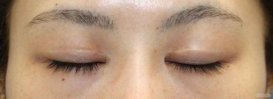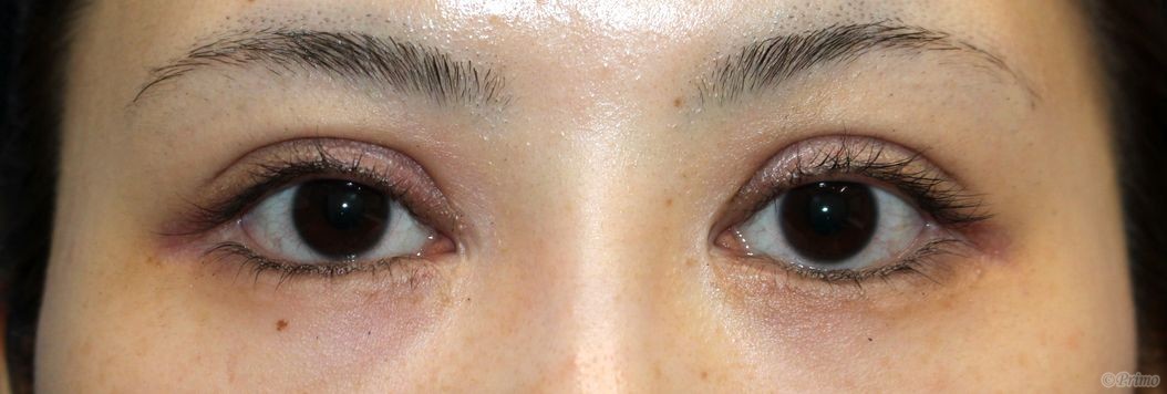 二重修正術、ROOF切除術、他院下眼瞼拡大術(たれ目形成)修正術後2ヶ月の経過写真です。