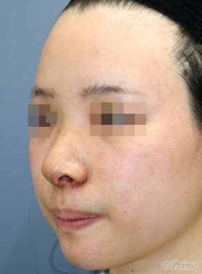 術前は鼻が低くいため小鼻が横に広がって見える状態でした。