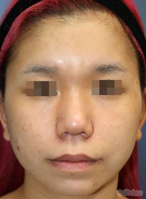 鼻翼縮小術(小鼻縮小術)内側法+外側法、鼻尖縮小術(3D法)手術後1ヶ月の経過写真です。