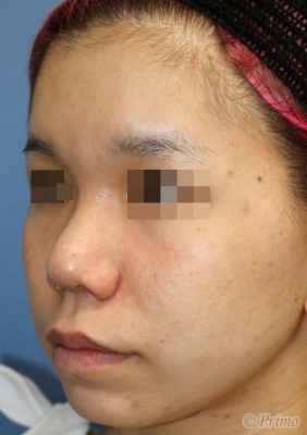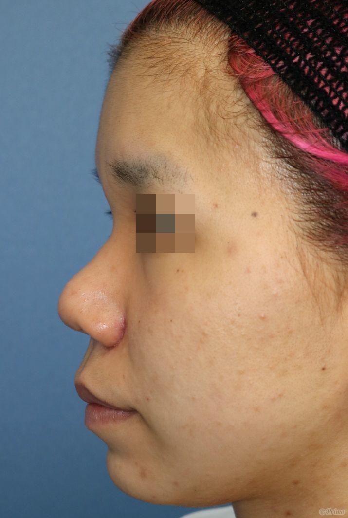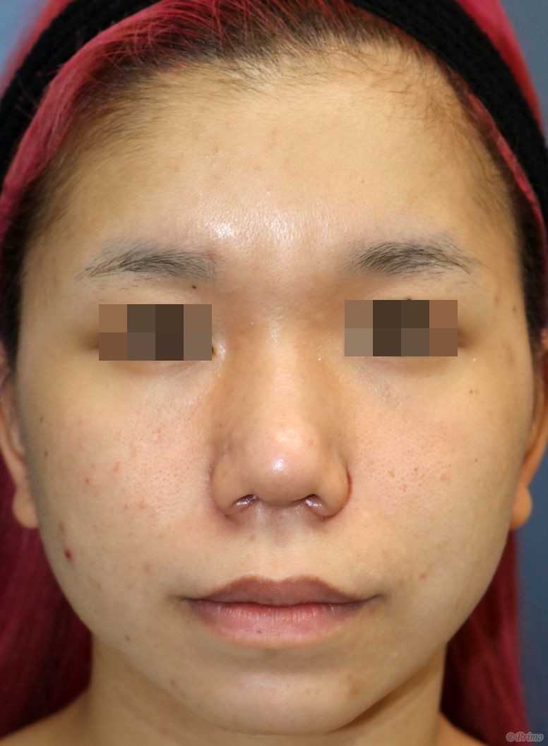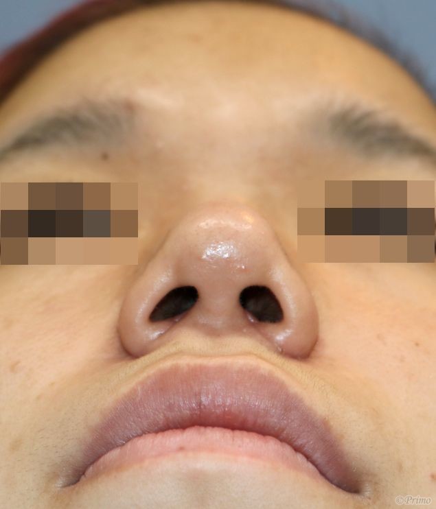 鼻翼縮小術(小鼻縮小術)内側法+外側法、鼻尖縮小術(3D法)手術後1ヶ月の経過写真です。