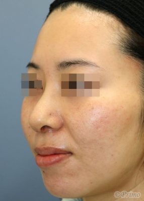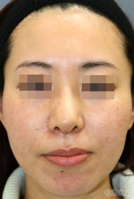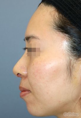 期待した効果がなかったとのことで、鼻の下半部を高く下向きにしたいという希望から、当院で鼻中隔延長術(肋軟骨)+鼻背部軟骨移植術を行いました。