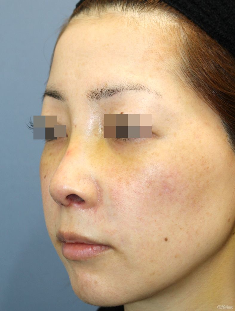 手術前の正面です。 術前は他院でL型のプロテーゼを入れて10年ほど経過しておりました。プロテーゼの輪郭が浮き出ている、上を向いた鼻を治したいという希望から、 当院で鼻中隔延長術+他院鼻プロテーゼ入れ替え術+眉間プロテーゼ手術を行いました。 鼻中隔延長術+他院鼻プロテーゼ入れ替え術+眉間プロテーゼ手術後1週間の経過写真です。 術後の腫脹はまだまだありますが、鼻中隔延長術によって鼻の穴が正面から見えにくくなりました。 手術前の斜めからです。 手術後1週間の斜めからです。 術後は鼻中隔延長術の効果で鼻先が高くなりました。 手術前の横からです。 手術後1週間の横からです。 術後は鼻中隔延長術の効果で鼻先が高くなりE lineが改善しました。 眉間プロテーゼの効果でおでこからの輪郭も改善しています。 ・費用(税別、麻酔代別) 鼻中隔延長術 ¥600,000 他院鼻プロテーゼ入れ替え術 ¥400,000 眉間プロテーゼ ¥300,000 他院修正術 ¥300,000 ・リスク・副作用(起こり得る可能性のあること) 腫れ、内出血、鼻出血、鼻づまり 鼻柱の傷跡 鼻先、耳介の知覚低下 鼻の傾き 鼻尖部の挙上ができない 鼻の形の左右差 プロテーゼの動揺 鼻中隔延長術 眉間プロテーゼ にほんブログ村 美容外科ブログランキングへ Tags:他院鼻プロテーゼ入れ替え術眉間プロテーゼ鼻プロテーゼ入れ替え術鼻中隔延長術