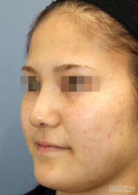 - 皮膚の伸びが悪い状態で無理に高くすることでリスクは高くなります。必要に応じ修正手術で矯正いたします。場合によっては鼻の高さを低くする必要があります。