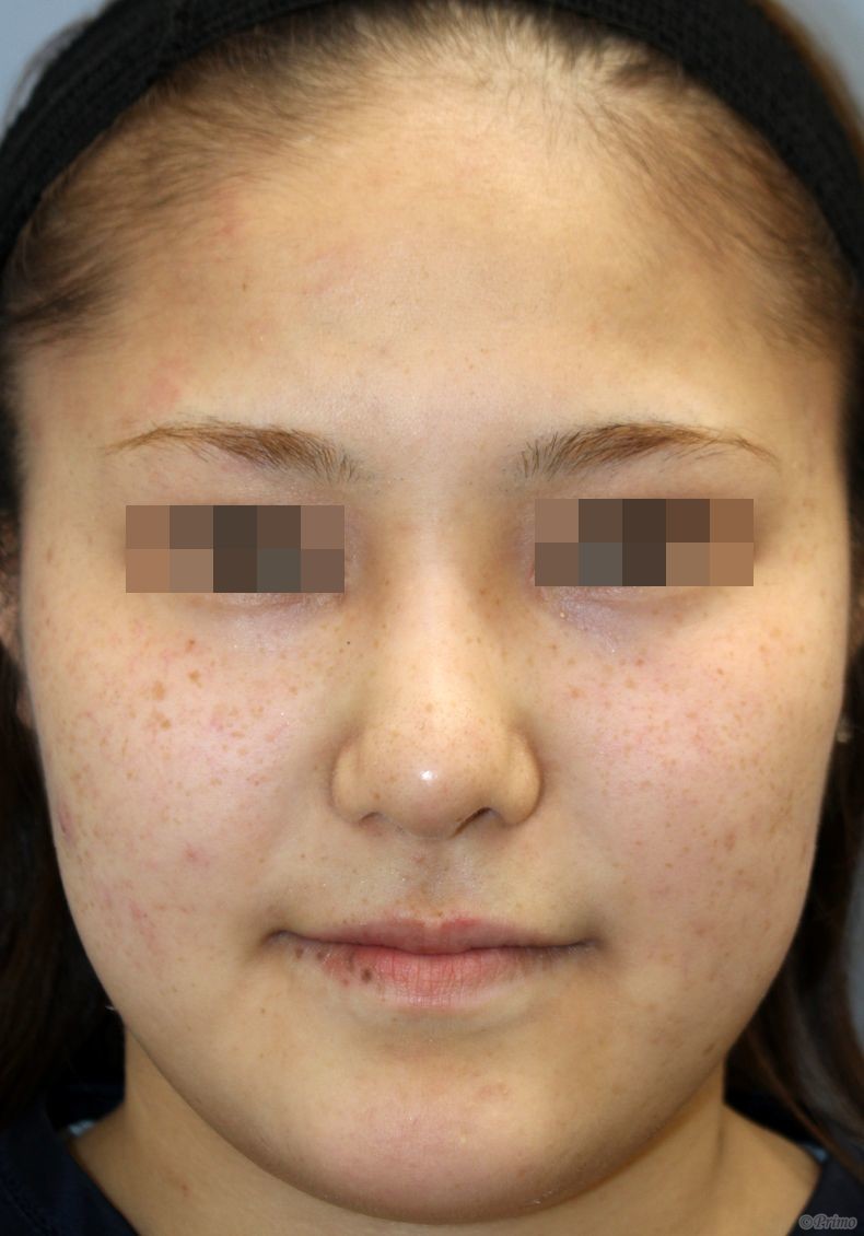 鼻中隔延長術+隆鼻術+眉間プロテーゼ手術後3ヶ月の経過写真です。