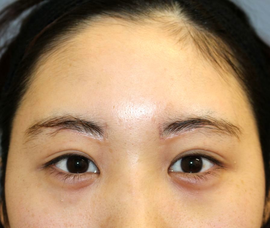 術前は目元が重い印象で、眉毛を軽度挙上していましたが、
