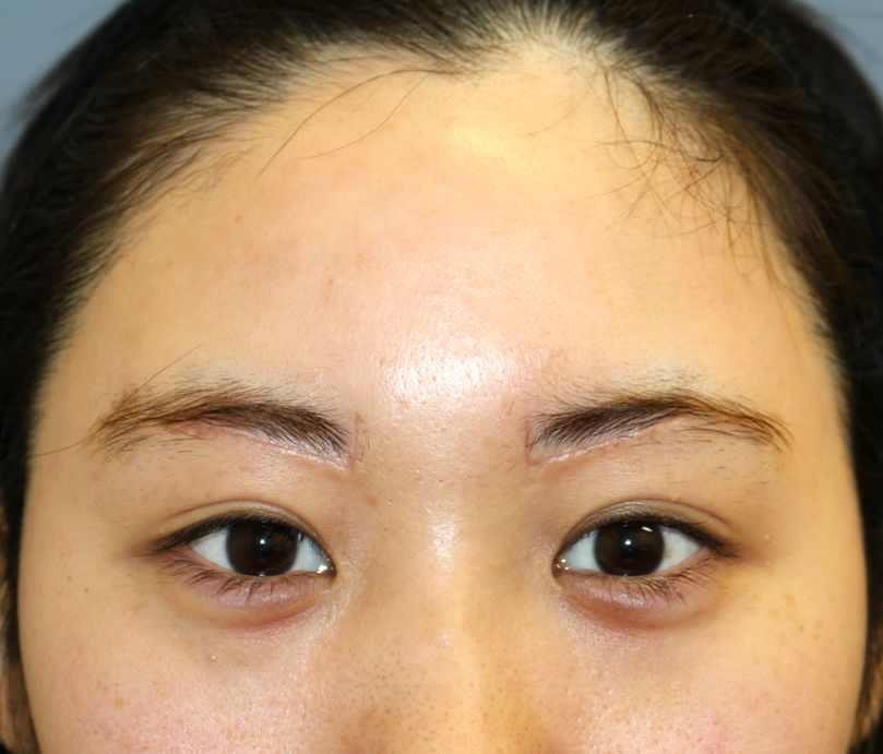 術前は目元が重い印象で、眉毛を軽度挙上していましたが、