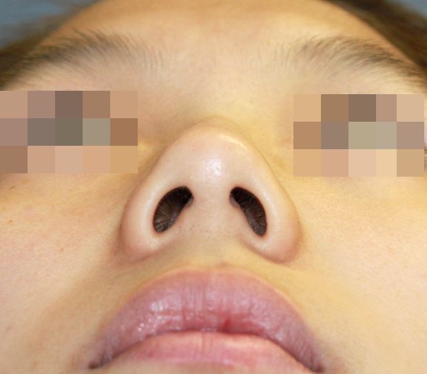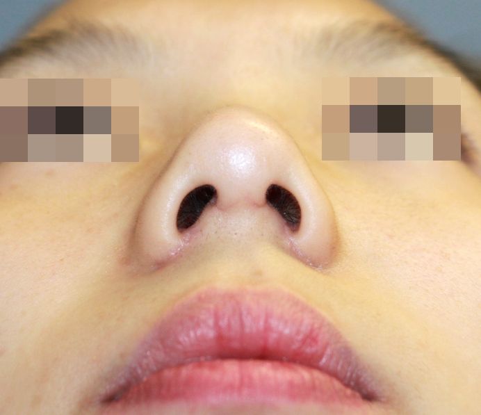 - 腫れなどにより、術後思ったほど細く見えないことがあります。通常3〜6ヵ月の経過でだんだんと細くなっていきます。腫れを早めに引かせる注射の処置を行うことがあります。鼻を細くできる範囲には限界があるため、効果が物足りないと感じる場合が稀にあります。
