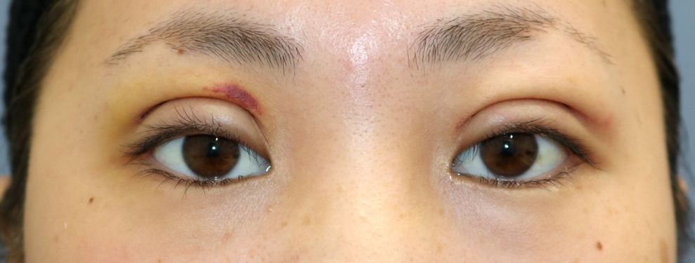右に生じた内出血はあと1週間ほどで消退する見込みです。