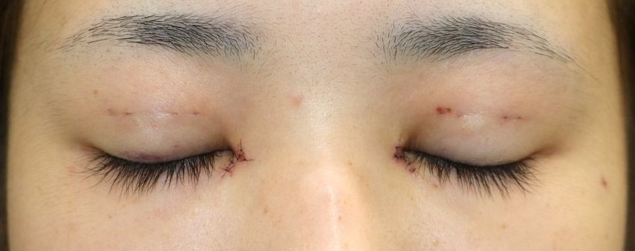 二重埋没法6点固定、目頭切開 手術後3日目の経過写真です。
