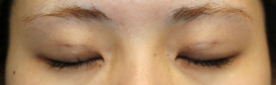 両側二重埋没法 6点固定 手術後1か月の写真です。 make upなしです。 両側ともご希望の平行型の二重が形成されています。 右の方が若干開瞼が悪いので二重幅が広くみえます。 手術前の目元です。 術後1か月の目を閉じたところです。 針穴のきずは目立ちません。 にほんブログ村 美容外科 ブログランキングへ Tags:二重埋没法