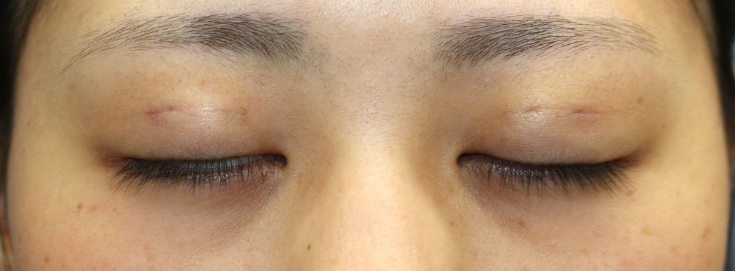 幅の広い平行型の二重を希望され埋没法6点固定を行いました。