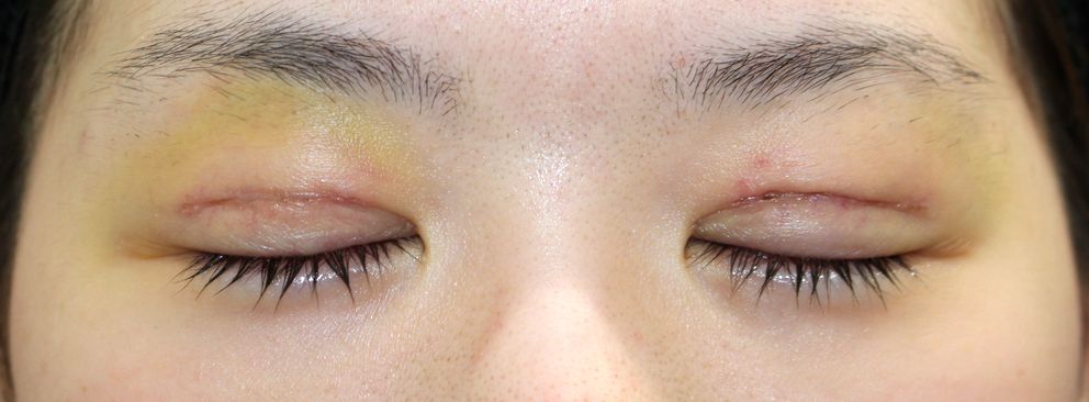 手術前の目元です。 二重を少し広くして、腫れぼったさを改善したい 下方向に目を大きくしたいとのご希望に対して 全切開+上眼瞼脱脂、ROOF切除、下眼瞼拡大術を施行しました。 全切開+上眼瞼脱脂、ROOF切除、下眼瞼拡大術 手術後1週間の経過写真です。 make upなしです。 術後1週間で、まだ腫れがあり、結膜下出血も認めますが、 はっきりした二重が形成され、下方向に目が大きくなりました。 手術後1週間の目を閉じたところです。 開瞼時です。 閉瞼時です。 ・費用(税別、麻酔代別) 全切開+上眼瞼脱脂術 ¥350,000 ROOF切除術(セット割引) ¥100,000 下眼瞼拡大術 ¥400,000 ・リスク・副作用(起こり得る可能性のあること) 腫れ、内出血、瞼の違和感、傷跡 睫毛側皮膚の知覚低下 ラインの消失 瞼の形態の変化 三白眼、逆さまつ毛、複視 全切開 上眼瞼脱脂術 ROOF切除術 下眼瞼拡大術(たれ目形成) にほんブログ村 美容外科 ブログランキングへ Tags:ROOF切除術上眼瞼脱脂術下眼瞼拡大術全切開