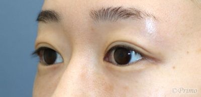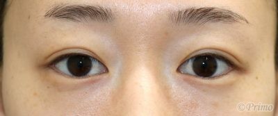 眼瞼下垂手術により左右差を軽減し、さらに開瞼が良くなることで眉毛と目の距離が近づき、目力がアップしました。
