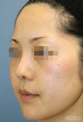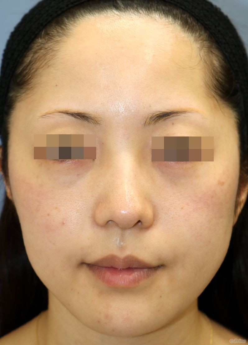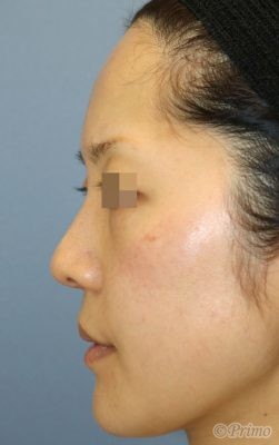 鼻の曲がりを修正し、鼻先も下へのばしたいという希望から、当院で整鼻術+鼻中隔延長術+鼻中隔矯正術+鼻背部軟骨移植術を行いました。