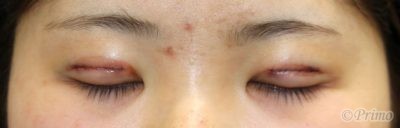 手術後1週間の目を閉じたところです。