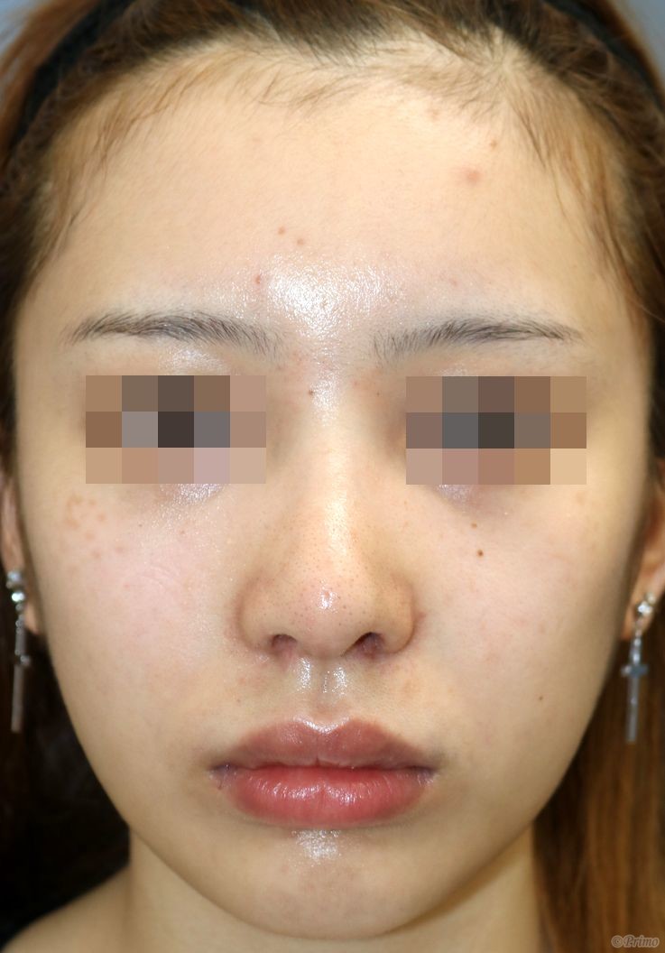 手術前の正面です。 術前は他院で団子鼻修正のほかBNLS注射、ヒアルロン酸注入を受けていらっしゃいました。 鼻全体を高く、小鼻を小さくしたいということで、 当院で整鼻術+鼻中隔延長術+鼻背部軟骨移植術+鼻翼縮小術(小鼻縮小術)内側法+鼻孔縁挙上術手術を行いました。 整鼻術+鼻中隔延長術+鼻背部軟骨移植術+鼻翼縮小術(小鼻縮小術)内側法+鼻孔縁挙上術手術後1ヶ月の経過写真です。 術後は整鼻術によって鼻筋が細くすっきりと通るようになりました。 腫れやむくみもだんだん落ち着いてきました。 手術前の斜めからです。 手術後1ヶ月の斜めからです。 術後は整鼻術、鼻背部軟骨移植術の効果で鼻筋がきれいに整いました。 手術前の横からです。 手術後1ヶ月の横からです。 術後は鼻中隔延長術、鼻背部軟骨移植術の効果で鼻先が高くなり、 鼻背のラインがきれいになりました。 術前と比較して術後は口元も控えめに見えるようになっています。 手術前の下からです。 手術後1ヶ月の下からです。 術後は鼻翼縮小術によって小鼻の横幅が狭くなり、 鼻孔縁挙上術によって小鼻が小さくなりました。 傷跡は経過とともにわかりにくくなっていきます。 ・費用(税別、麻酔代別) 整鼻術 ¥600,000 鼻中隔延長術 ¥600,000 鼻背部軟骨移植術 ¥300,000 鼻翼縮小術(内側法) ¥300,000 鼻孔縁挙上術 ¥300,000 ・リスク・副作用(起こり得る可能性のあること) 腫れ、内出血、違和感 鼻出血、鼻づまり 鼻柱の傷跡 鼻先、耳介の知覚低下 鼻の傾き 鼻尖部の挙上ができない 鼻の段差、鼻の形の左右差 鼻尖部が丸く感じる 鼻翼が厚くなる 整鼻術 鼻中隔延長術 鼻翼縮小術 鼻孔縁挙上術 にほんブログ村 美容外科ブログランキングへ Tags:内側法整鼻術鼻中隔延長術鼻孔縁挙上術鼻翼縮小術鼻背部軟骨移植術