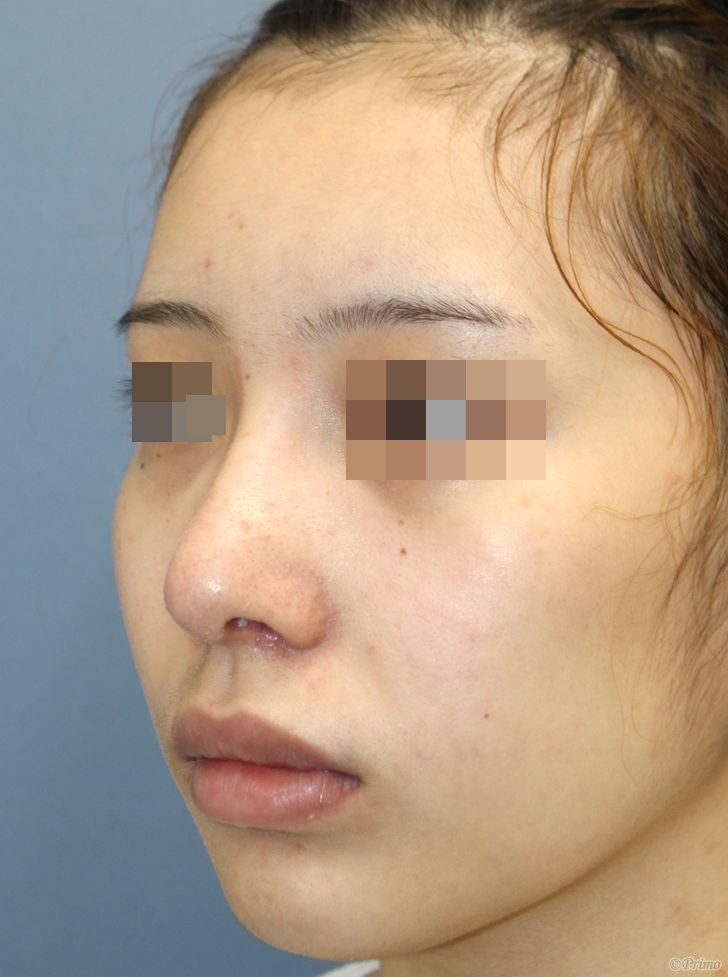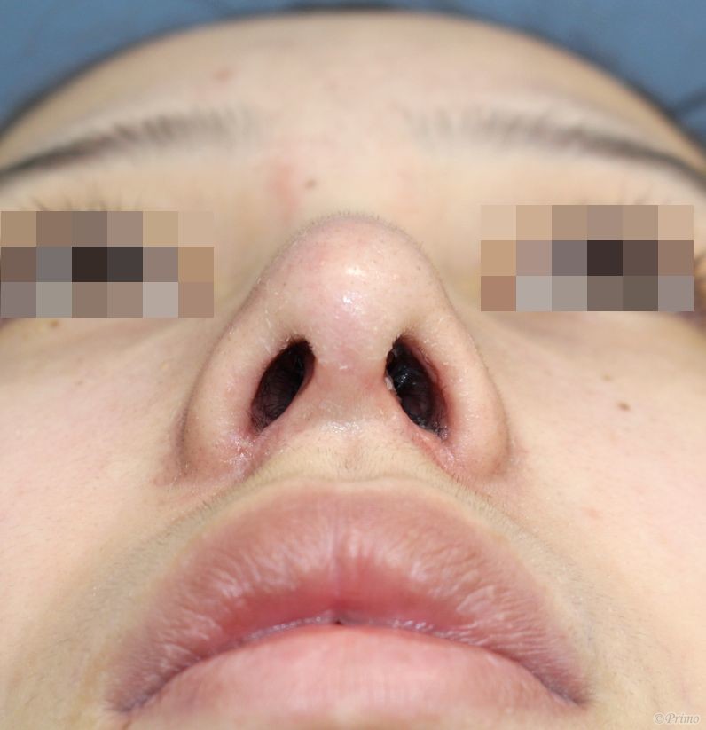 手術前の正面です。 術前は他院で団子鼻修正のほかBNLS注射、ヒアルロン酸注入を受けていらっしゃいました。 鼻全体を高く、小鼻を小さくしたいということで、 当院で整鼻術+鼻中隔延長術+鼻背部軟骨移植術+鼻翼縮小術(小鼻縮小術)内側法+鼻孔縁挙上術手術を行いました。 整鼻術+鼻中隔延長術+鼻背部軟骨移植術+鼻翼縮小術(小鼻縮小術)内側法+鼻孔縁挙上術手術後2ヶ月の経過写真です。 術後は整鼻術、鼻中隔延長術、鼻翼縮小術の効果で鼻全体がほっそりとしてきました。 手術前の斜めからです。 手術後2ヶ月の斜めからです。 術後は整鼻術、鼻背部軟骨移植術によって鼻筋がきれいに改善されました。 鼻中隔延長術により鼻先が高く、下向きに修正されました。 手術前の横からです。 手術後2ヶ月の横からです。 鼻中隔延長術によって鼻先が高く下向きになり、 鼻背部軟骨移植術によって鼻背ラインが改善されています。 手術前の下からです。 手術後2ヶ月の下からです。 術後は鼻翼縮小術によって小鼻全体がすっきりと小さくなりました。 傷跡も目立ちにくくなってまいります。 ・費用(税別、麻酔代別) 整鼻術 ¥600,000 鼻中隔延長術 ¥600,000 鼻背部軟骨移植術 ¥300,000 鼻翼縮小術(内側法) ¥300,000 鼻孔縁挙上術 ¥300,000 ・リスク・副作用(起こり得る可能性のあること) 腫れ、内出血、違和感 鼻出血、鼻づまり 鼻柱の傷跡 鼻先、耳介の知覚低下 鼻の傾き 鼻尖部の挙上ができない 鼻の段差、鼻の形の左右差 鼻尖部が丸く感じる 鼻翼が厚くなる 整鼻術 鼻中隔延長術 鼻翼縮小術 鼻孔縁挙上術 にほんブログ村 美容外科ブログランキングへ Tags:内側法整鼻術鼻中隔延長術鼻孔縁挙上術鼻翼縮小術鼻背部軟骨移植術