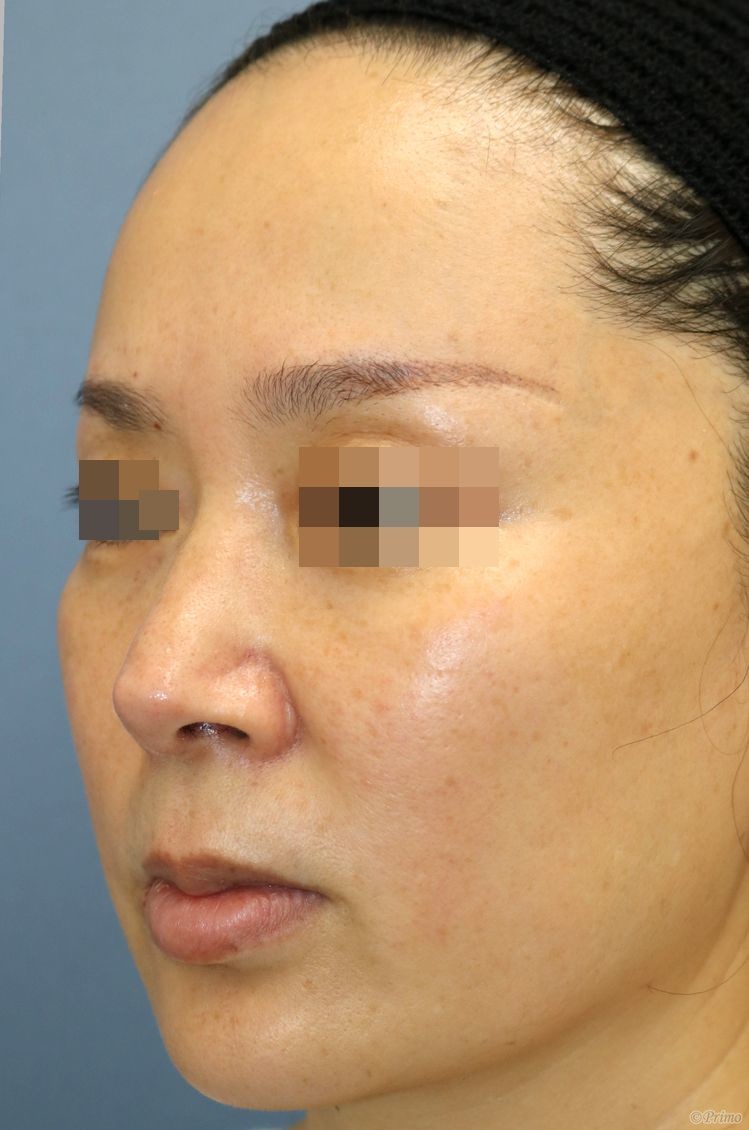 手術前の正面です。 他院でL型プロテーゼを入れて、10年経過していました。 鼻先の皮膚が薄くなっており、異物を使用せずに鼻先を高くしたいということで、 当院で鼻中隔延長術+鼻背部軟骨移植術+他院鼻プロテーゼ抜去術を行いました。 鼻中隔延長術+鼻背部軟骨移植術+他院鼻プロテーゼ抜去術手術後6ヶ月の経過写真です。 術後は鼻中隔延長術の効果により鼻柱が下りて鼻先が下向きになりました。 術前より鼻の穴が目立たなくなっています。 手術前の斜めからです。 手術後6ヶ月の斜めからです。 手術前の横からです。 手術後6ヶ月の横からです。 術後は鼻中隔延長術の効果により鼻先が高く、下向きになりました。 鼻の下が短く見えるようになり、口元は控えめになりました。 鼻背部軟骨移植術の効果によって鼻背ラインも綺麗に整いました。 ・費用(税別、麻酔代別) 鼻中隔延長術 ¥600,000 鼻背部軟骨移植術 ¥300,000 他院鼻プロテーゼ抜去術 ¥100,000 ・リスク・副作用(起こり得る可能性のあること) 腫れ、内出血、鼻出血、鼻づまり 鼻柱の傷跡 鼻先、耳介の知覚低下 鼻の傾き 鼻尖部の挙上ができない 鼻の形の左右差 鼻の高さの変化 手術後の鼻先の変形 鼻中隔延長術 鼻プロテーゼ抜去術 にほんブログ村 美容外科ブログランキングへ Tags:プロテーゼ抜去術鼻中隔延長術鼻背部軟骨移植術