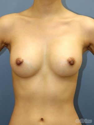 シリコンプロテーゼによる豊胸術後1週間の経過写真です。