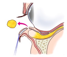 治療は目の裏側、結膜側からの小切開で