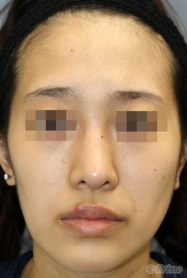 手術前の正面です。 術前はI型プロテーゼを入れて2年ほど経過していました。 鼻を高くして、鼻先を下向きにしたいというご希望から、 当院で鼻中隔延長術+他院鼻プロテーゼ入れ替え術+眉間プロテーゼ手術を行いました。 鼻中隔延長術+他院鼻プロテーゼ入れ替え術+眉間プロテーゼ手術後3ヶ月の経過写真です。 術後は眉間プロテーゼによってやや曲がっていた鼻筋が真っすぐに整いました。 鼻中隔延長の効果で鼻柱が下りたことで口元が控えめになり、 鼻の穴が正面から見えにくくなりました。 手術前の斜めからです。 手術後3ヶ月の斜めからです。 術後は眉間プロテーゼによって眉と眉の間が高くなり、 鼻筋がきれいに通るようになりました。 手術前の横からです。 手術後3ヶ月の横からです。 術後は鼻中隔延長術と眉間プロテーゼの組み合わせによって鼻全体が高くなりました。 鼻先は高くなり、顔立ちに立体感が生まれました。 ・費用(税別、麻酔代別) 鼻中隔延長術 ¥600,000 他院鼻プロテーゼ入れ替え術 ¥400,000 眉間プロテーゼ ¥300,000 他院修正術 ¥300,000 ・リスク・副作用(起こり得る可能性のあること) 腫れ、内出血、鼻出血、鼻づまり 鼻柱の傷跡 鼻先、耳介の知覚低下 鼻の傾き 鼻尖部の挙上ができない 鼻の形の左右差 プロテーゼの動揺 鼻中隔延長術 眉間プロテーゼ にほんブログ村 美容外科ブログランキングへ Tags:眉間プロテーゼ鼻プロテーゼ入れ替え術鼻中隔延長術
