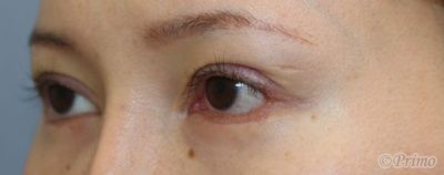 逆さまつ毛手術により、下眼瞼拡大術により生じた逆さまつ毛も矯正されています。