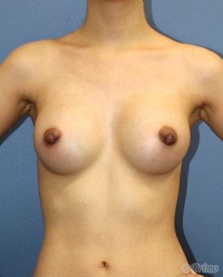 シリコンプロテーゼによる豊胸術後2か月の経過写真です。