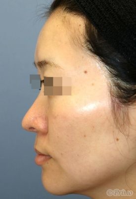 手術前の正面です。 4~5年前に他院でフレックスノーズを受けていらっしゃいました。 鼻先を高くしたい、笑った際に広がる小鼻を改善したいというご希望により、 当院で鼻中隔延長術+鼻背部軟骨移植術を行いました。 鼻中隔延長術+鼻背部軟骨移植術手術後6ヶ月の経過写真です。 術後は鼻中隔延長術により鼻先が高く、すっきりとした印象になりました。 手術前の斜めからです。 手術後6ヶ月の斜めからです。 手術前の横からです。 手術後6ヶ月の横からです。 鼻中隔延長によって鼻柱が下り、鼻先が下向きに伸びました。 口元が控えめになり、顔全体に立体感が生まれています。 鼻背部軟骨移植術の効果で鼻背ラインも綺麗に整いました。 ・費用(税別、麻酔代別) 鼻中隔延長術 ¥600,000 鼻背部軟骨移植術 ¥300,000 ・リスク・副作用(起こり得る可能性のあること) 腫れ、内出血、鼻出血、鼻づまり 鼻柱の傷跡 鼻先、耳介の知覚低下 鼻の傾き 鼻尖部の挙上ができない 鼻の形の左右差 鼻中隔延長術 にほんブログ村 美容外科ブログランキングへ Tags:フレックスノーズ修正鼻中隔延長術鼻背部軟骨移植術
