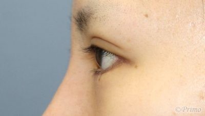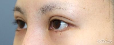 二重幅は広くなり、下眼瞼拡大術と目尻切開の効果で、目が外側方向下方向へと大きくなり、さらにぱっちりした目になりました。