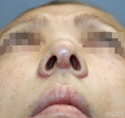 手術前の正面です。 術前は他院で3年前にヒアルロン酸注入を行っていました。 鼻先が短く鼻の穴が見えるのが気になるのと、 鼻先をもっとスリムにしたいというご希望により、 当院で鼻翼縮小術(外側法)+鼻中隔延長術+鼻背部軟骨移植術+鼻尖縮小術を行いました。 鼻翼縮小術(外側法)+鼻中隔延長術+鼻背部軟骨移植術+鼻尖縮小術手術後2週間の経過写真です。 術後は鼻中隔延長によって鼻柱が下りて鼻の穴が見えにくくなりました。 鼻翼縮小術(外側法)、鼻尖縮小術によって鼻翼がすっきりとした印象になりました。 手術前の斜めからです。 手術後2週間の斜めからです。 鼻中隔延長術によって鼻が長くなり、口元が控えめになりました。 手術前の横からです。 手術後2週間の横からです。 術後は鼻中隔延長術の効果で鼻先が高く下向きになりました。 鼻背部軟骨移植術によって鼻背ラインも改善されています。 手術前の下からです。 手術後2週間の下からです。 術後は鼻翼縮小術、鼻尖縮小術によって小鼻の幅が狭くなり、 小鼻全体がすっきりと小さくなりました。 ・費用(税別、麻酔代別) 鼻中隔延長術 ¥600,000 鼻背部軟骨移植術 ¥300,000 鼻翼縮小術(外側法) ¥300,000 鼻尖縮小術(セット割引) ¥200,000 ・リスク・副作用(起こり得る可能性のあること) 腫れ、内出血、鼻出血 鼻の知覚低下 耳介の知覚低下 鼻づまり 鼻尖部の挙上ができない 傷跡 鼻の形の左右差 鼻翼縮小術 鼻中隔延長術 鼻尖縮小術3D法(鼻尖縮小術+鼻翼軟骨移植術) にほんブログ村 美容外科ブログランキングへ Tags:外側法鼻中隔延長術鼻尖縮小術鼻翼縮小術鼻背部軟骨移植術