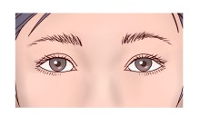 眉毛を持ち上げて目をあけるのは老けた表情になり嫌な方、