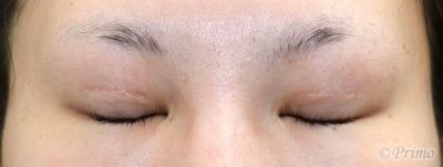 手術後6か月の目を閉じたところです。