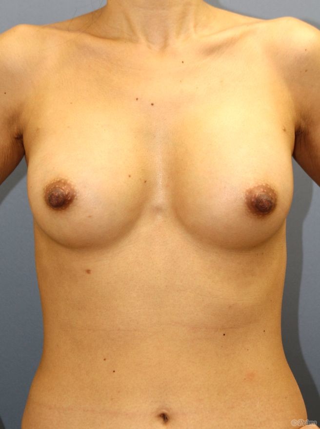 手術前の正面です。 バストを大きくしたいということで、 当院でシリコンプロテーゼによる豊胸術を行いました。 シリコンプロテーゼによる豊胸術後2週間の経過写真です。 術後はしっかりとボリュームが得られ、体型に合った自然なバストになりました。 手術前の斜めからです。 手術後2週間の斜めからです。 わきの下から切開し、大胸筋筋膜下にアナトミカルタイプのコヒーシヴシリコンを入れています。 手術前の横からです。 手術後2週間の横からです。 プロテーゼのサイズは手術中にご自身で選択され、 240ccの大きさを選ばれました。 ・費用(税別、麻酔代別) 豊胸術 ¥700,000 豊胸術(300cc以上) ¥800,000 ・リスク・副作用(起こり得る可能性のあること) 腫れ、内出血、痛み 皮膚のつっぱり感、てかり わきの可動域制限、傷の赤み、盛り上がり バストや上腕のしびれ、知覚低下 被膜拘縮、リップリング、左右差 プロテーゼの動揺、プロテーゼの破損 豊胸術(ソフトコヒーシヴシリコン) にほんブログ村 美容外科 ブログランキングへ Tags:シリコンプロテーゼ大胸筋筋膜下豊胸術