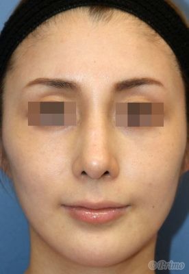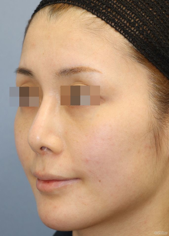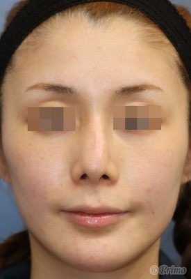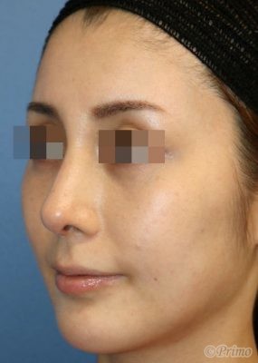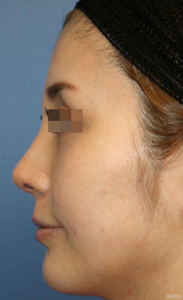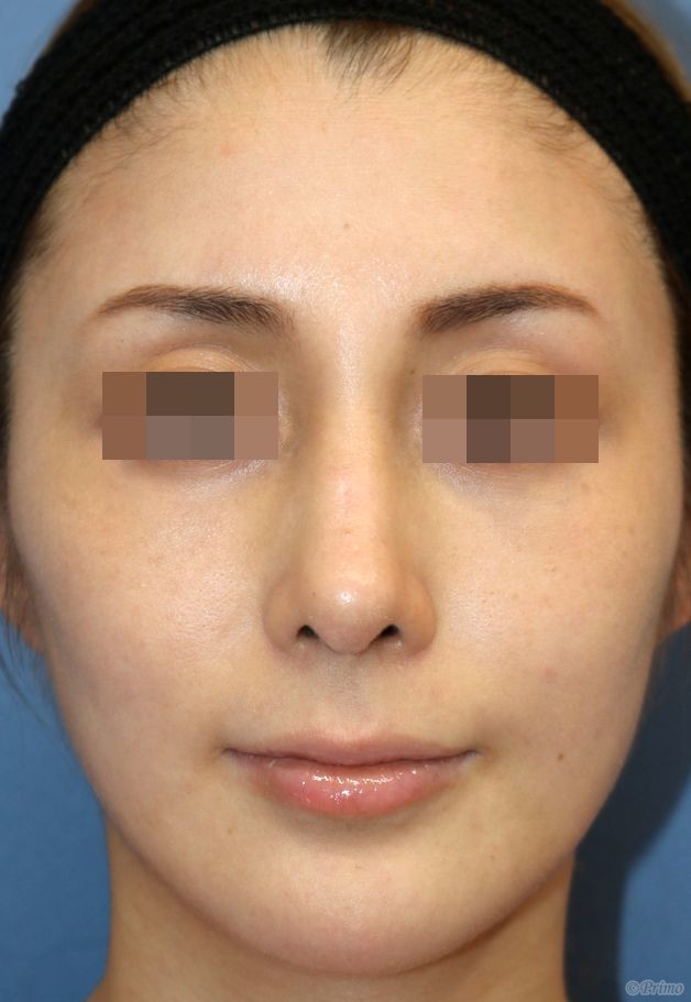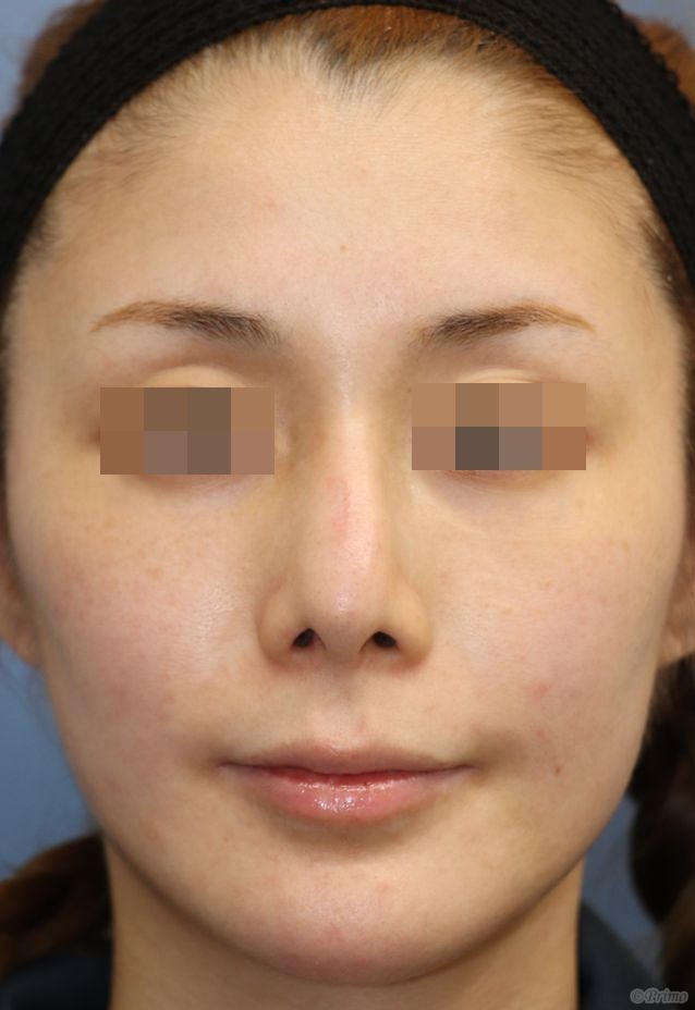 手術前の正面です。 術前は他院で3度プロテーゼを入れていました。 鼻筋が曲がってしまったため、プロテーゼ入れ替えを他院で1年程前に行いましたが、 なお曲がっている鼻筋を改善し、鼻先も高くしたいということで、 当院で鼻中隔延長術+他院鼻プロテーゼ入れ替え術+眉間プロテーゼ手術を行いました。 曲がるリスクを減らすため、オーダーメイドのプロテーゼを使用しています。 鼻中隔延長術+他院鼻プロテーゼ入れ替え術(特別注文プロテーゼ)+眉間プロテーゼ手術後1ヶ月の経過写真です。 術後は鼻中隔延長術によって鼻先が高くなり、 プロテーゼ入れ替えによって鼻筋が眉間から鼻先にかけて真っすぐきれいに通りました。 浮腫みがとれて鼻先がほっそりとしてきました。 手術前の斜めからです。 手術後1ヶ月の斜めからです。 術後は眉間プロテーゼの効果で眉間に高さが得られ、鼻筋が滑らかに通りました。 手術前の横からです。 手術後1ヶ月の横からです。 鼻中隔延長術、眉間プロテーゼによって眉間から鼻先までバランス良く高くなりました。 ご本人の希望によりややアップノーズになっています。 より立体的な顔立ちになりました。 ・費用(税別、麻酔代別) 鼻中隔延長術 ¥600,000 他院鼻プロテーゼ入れ替え術 ¥400,000 眉間プロテーゼ ¥300,000 ・リスク・副作用(起こり得る可能性のあること) 腫れ、内出血、鼻出血、鼻づまり 鼻柱の傷跡 鼻先、耳介の知覚低下 鼻の傾き 鼻尖部の挙上ができない 鼻の形の左右差 プロテーゼの動揺 鼻中隔延長術 眉間プロテーゼ にほんブログ村 美容外科ブログランキングへ Tags:眉間プロテーゼ鼻プロテーゼ入れ替え術鼻中隔延長術