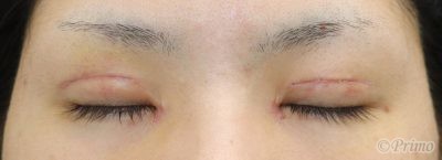 はっきりした平行型の二重を希望され、全切開、上眼瞼脱脂、ROOF切除、目頭切開を行いました。
