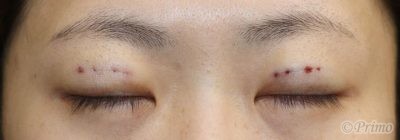 手術前の目元です。 はっきりした平行型の二重にしたいとのご希望に対して 二重埋没6点固定を行いました。 手術直後の経過写真です。 make upなしです。 腫れがでてきていますが、はっきりした二重が形成されました。 手術後直後の目を閉じたところです。 ・費用(税別、麻酔代別) 二重埋没法6点固定 ¥160,000 ・リスク・副作用(起こり得る可能性のあること) 腫れ、内出血 瞼の違和感 埋没糸の露出 ラインの消失 逆さまつ毛 埋没法 にほんブログ村 美容外科 ブログランキングへ Tags:二重埋没法