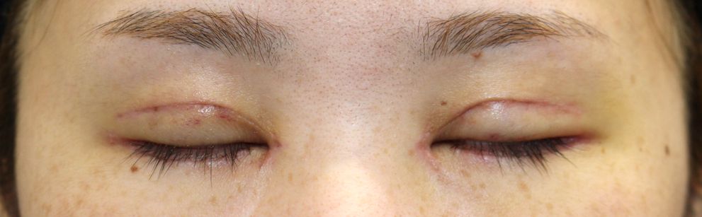 平行型の幅広の二重を希望され、当院で全切開+上眼瞼脱脂術を行いました。