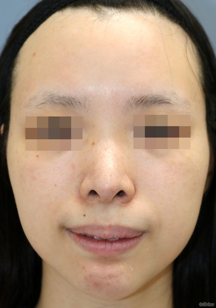 手術前の正面です。 3ヶ月前に当院で鼻中隔延長術、鼻背部軟骨移植術、鼻翼縮小術を行っています。 1年ほど前に他院で入れたアゴプロテーゼが曲がってしまっているのと、 頬の輪郭が丸いのを改善したいというご希望により、 当院で頬アゴ脂肪吸引+他院アゴプロテーゼ入れ替え術を行いました。 頬アゴ脂肪吸引+他院アゴプロテーゼ入れ替え術後6ヶ月の経過写真の経過写真です。 術後はプロテーゼを細いものに入れ替え、脂肪吸引を行ったことで、 術前と比較して顔の輪郭がシャープになりました。 手術前の斜めからです。 手術後6ヶ月の斜めからです。 手術前の横からです。 手術後6ヶ月の横からです。 ・費用(麻酔代別、税別) 頬顎脂肪吸引 ¥400,000 他院アゴプロテーゼ入れ替え術 ¥450,000 ・リスク・副作用(起こり得る可能性のあること) 腫れ、内出血 創の赤み、盛り上がり、かゆみ 皮膚の張りの低下 吸引部位のしびれ、知覚低下 口腔内の傷跡 アゴの知覚低下 プロテーゼの動揺、位置異常、左右差 骨吸収 脂肪吸引 アゴプロテーゼ抜去術(アゴプロテーゼ入れ替え術) にほんブログ村 美容外科 ブログランキングへ Tags:アゴプロテーゼ脂肪吸引頬顎脂肪吸引