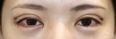 他院下眼瞼拡大修正術(たれ目形成修正)術直後の経過写真です。