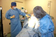 手術の無影灯の光が胸にあたっていてちょっとわかりにくく