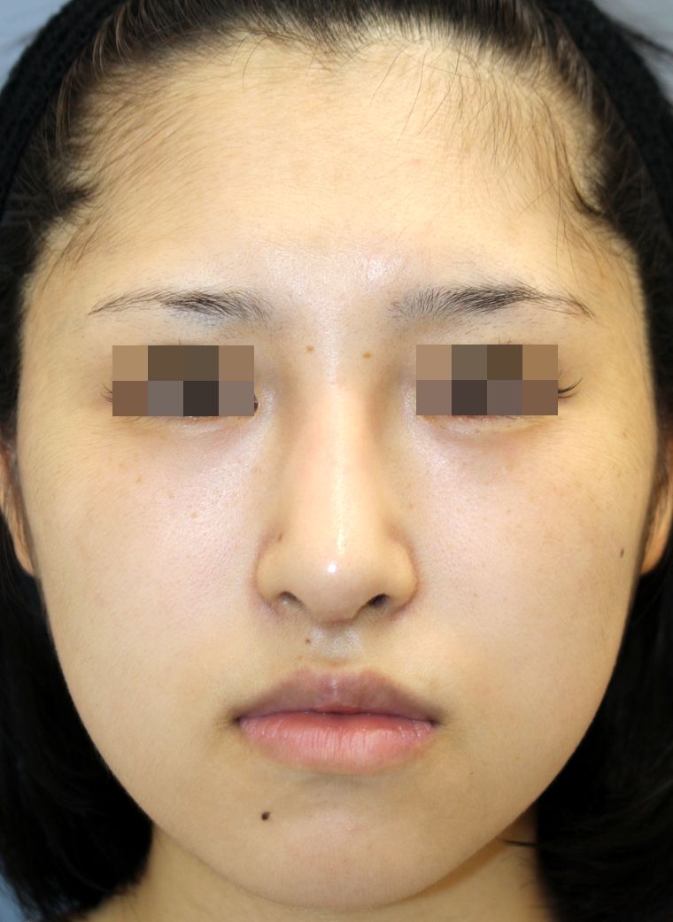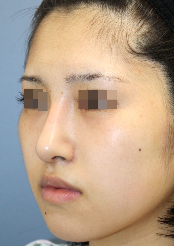 手術前の正面です。 術前は他院で入れたブタ軟骨が鼻に入っていました。もっと高さがほしい、 鼻先も高く細くしたい、曲がっている感じも修正したいという希望から、 当院で鼻中隔延長術(肋軟骨移植)+他院鼻プロテーゼ入れ替え術+眉間プロテーゼ手術をおこないました。 鼻中隔延長術(肋軟骨移植)+他院鼻プロテーゼ入れ替え術+眉間プロテーゼ手術後1ヶ月の経過写真です。 術後は眉間から鼻先までしっかりと鼻筋が通りました。 手術前の斜めからです。 手術後1ヶ月の斜めからです。 術前は鼻根部、鼻背がやや高さ不十分だったとのことですが、 術後は高さも形もご満足いただけるプロフィールになったようです。 手術前の横からです。 手術後1ヶ月の横からです。 術後は鼻中隔延長術の効果で鼻先が下向き高くなりました。 眉間プロテーゼの効果でおでこからの流れもよくなっています。 ・費用(税込、麻酔代別) 鼻中隔延長術(肋軟骨) ¥880,000 他院鼻プロテーゼ入れ替え術 ¥440,000 眉間プロテーゼ ¥330,000 他院修正術 ¥330,000 ・リスク・副作用(起こり得る可能性のあること) 腫れ、内出血、鼻出血、鼻づまり 鼻柱の傷跡 鼻先、耳介の知覚低下 鼻の傾き 鼻尖部の挙上ができない 鼻の形の左右差 プロテーゼの動揺 鼻中隔延長術 鼻プロテーゼ入れ替え術 眉間プロテーゼ にほんブログ村 美容外科ブログランキングへ Tags:ブタ軟骨除去眉間プロテーゼ肋軟骨鼻プロテーゼ入れ替え術鼻中隔延長術