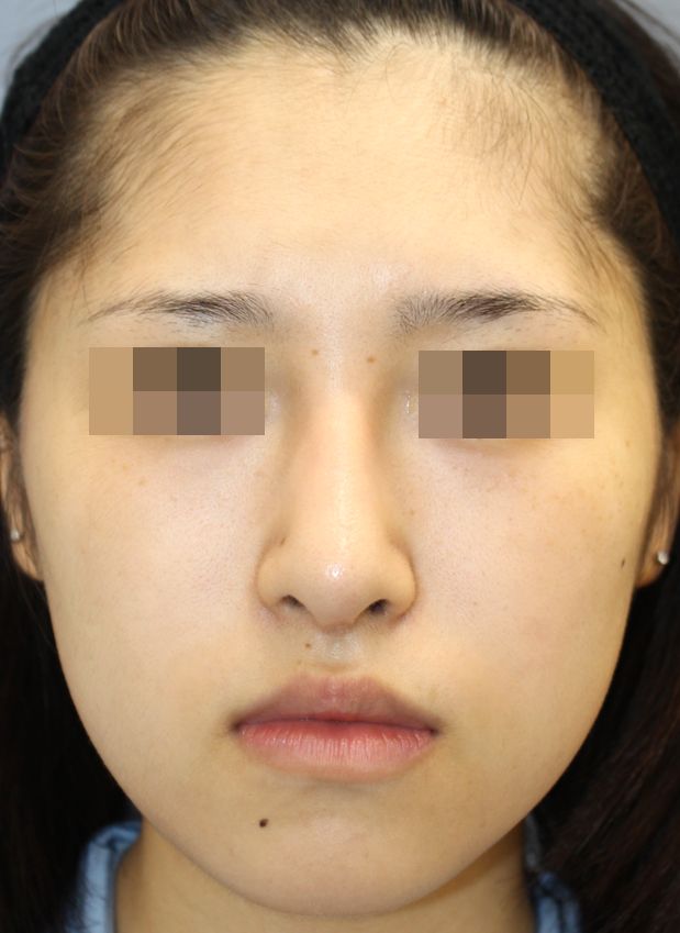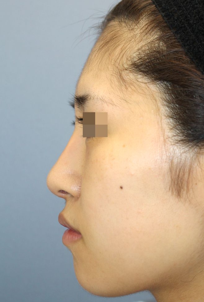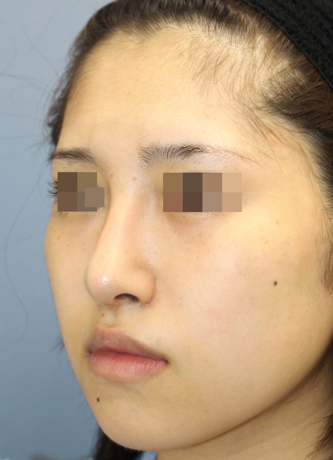 手術前の正面です。 術前は他院でブタ軟骨による隆鼻術が行われていましたが、 高さがもっとほしい、鼻先も細く高くしたい、曲がっている状態をできるだけまっすぐにしたいという希望から、 当院で鼻中隔延長術(肋軟骨移植)+他院鼻プロテーゼ入れ替え術+眉間プロテーゼ手術を行いました。 鼻中隔延長術(肋軟骨移植)+他院鼻プロテーゼ入れ替え術+眉間プロテーゼ手術後2ヶ月の経過写真です。 術後は鼻筋がしっかりと通りました。 鼻中隔延長術によって鼻柱が降りています。 手術前の斜めからです。 手術後2ヶ月の斜めからです。 術後は鼻根部から鼻背にかけてもしっかりと高さができました。 手術前の横からです。 手術後2ヶ月の横からです。 術後は鼻中隔延長術の効果によって鼻先が高く下向きになりました。 眉間プロテーゼによっておでこからのつながりもよくなっています。 ・費用(税込、麻酔代別) 鼻中隔延長術(肋軟骨) ¥880,000 他院鼻プロテーゼ入れ替え術 ¥440,000 眉間プロテーゼ ¥330,000 他院修正術 ¥330,000 ・リスク・副作用(起こり得る可能性のあること) 腫れ、内出血、鼻出血、鼻づまり 鼻柱の傷跡 鼻先、耳介の知覚低下 鼻の傾き 鼻尖部の挙上ができない 鼻の形の左右差 プロテーゼの動揺 鼻中隔延長術 鼻プロテーゼ入れ替え術 眉間プロテーゼ にほんブログ村 美容外科ブログランキングへ Tags:ブタ軟骨除去眉間プロテーゼ肋軟骨鼻プロテーゼ入れ替え術鼻中隔延長術
