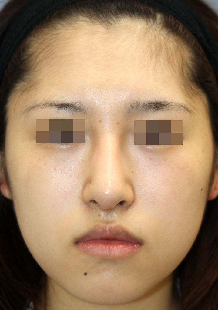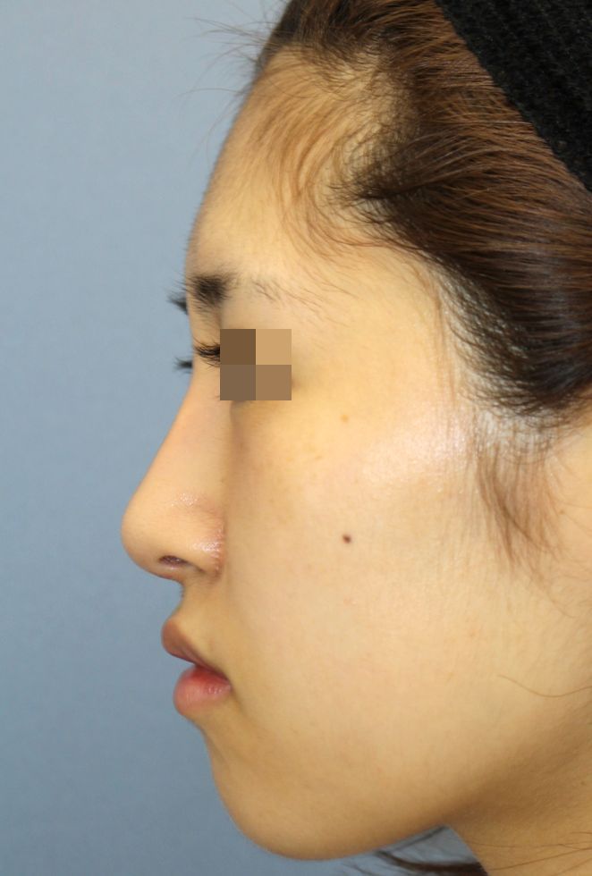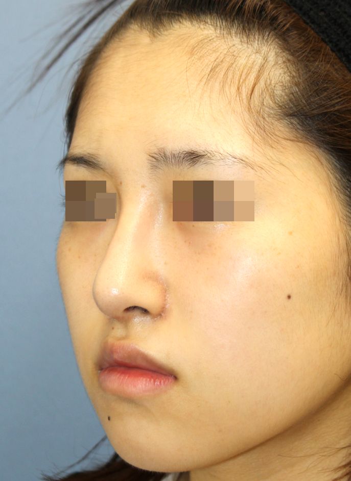手術前の正面です。 術前は他院で豚軟骨移植による隆鼻術を受けていらっしゃいましたが、 高さをもっと高くしたい、曲がっている状態を修正したいという希望から、 当院で鼻中隔延長術(肋軟骨移植)+他院鼻プロテーゼ入れ替え術+眉間プロテーゼ手術をおこないました。 鼻中隔延長術(肋軟骨移植)+他院鼻プロテーゼ入れ替え術+眉間プロテーゼ手術後3ヶ月の経過写真です。 術後3か月経過し、腫れ浮腫みはかなり消失しています。 ゴアテックスプロテーゼに入れ替えましたので、眉間から鼻先までしっかりと鼻筋が通りました。 曲がりも改善いたしました。 鼻中隔延長術の効果によって鼻柱も降りています。 手術前の斜めからです。 手術後3ヶ月の斜めからです。 術後は鼻が全体的に高くなり、下向きになりました。 手術前の横からです。 手術後3ヶ月の横からです。 術後は鼻中隔延長術の効果で鼻先が高く下向きになりました。 顔の立体感がでています。 眉間プロテーゼの効果で鼻根部の低さも改善し、前額からの流れが良くなりました。 ・費用(税込、麻酔代別) 鼻中隔延長術(肋軟骨) ¥880,000 他院鼻プロテーゼ入れ替え術 ¥440,000 眉間プロテーゼ ¥330,000 他院修正術 ¥330,000 ・リスク・副作用(起こり得る可能性のあること) 腫れ、内出血、鼻出血、鼻づまり 鼻柱の傷跡 鼻先、耳介の知覚低下 鼻の傾き 鼻尖部の挙上ができない 鼻の形の左右差 プロテーゼの動揺 鼻中隔延長術 鼻プロテーゼ入れ替え術 眉間プロテーゼ にほんブログ村 美容外科ブログランキングへ Tags:他院鼻プロテーゼ入れ替え術眉間プロテーゼ肋軟骨鼻プロテーゼ入れ替え術鼻中隔延長術