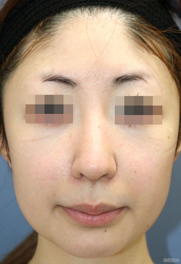 手術前の正面です。 10年以上前に他院で鼻尖縮小術を受けていらっしゃいました。 鼻を細く、小さくしたいというご希望により、 当院で鼻中隔延長術(肋軟骨)+隆鼻術+眉間プロテーゼ手術、 鼻翼縮小術(小鼻縮小術)内側法+外側法手術を行いました。 鼻中隔延長術(肋軟骨)+隆鼻術+眉間プロテーゼ手術、 鼻翼縮小術(小鼻縮小術)内側法+外側法手術後2ヶ月の経過写真です。 術後は鼻中隔延長術によって鼻柱が下り、鼻先が下向きに高くなりました。 鼻翼縮小術によって鼻先が細くなり、控えめな印象になりました。 手術前の斜めからです。 手術後2ヶ月の斜めからです。 術後は鼻中隔延長術によって鼻先が下向きに高くなり、口元が控えめになりました。 手術前の横からです。 手術後2ヶ月の横からです。 術後は鼻中隔延長術によって鼻先が下向きに高くなりました。 口元が控えめになり、Eラインが改善しています。 眉間プロテーゼの効果で眉間から鼻先にかけて鼻筋がきれいに通りました。 手術前の下からです。 手術後2ヶ月の下からです。 術後は鼻の横幅が狭くなり、小鼻が小さくスリムになりました。 ・費用(税別、麻酔代別) 鼻中隔延長術 ¥600,000 隆鼻術 ¥300,000 眉間プロテーゼ ¥300,000 鼻翼縮小術(内側法+外側法) ¥450,000 ・リスク・副作用(起こり得る可能性のあること) 腫れ、内出血、鼻出血、鼻づまり 鼻柱の傷跡 鼻先、耳介の知覚低下 鼻の傾き 鼻尖部の挙上ができない 鼻の形の左右差 プロテーゼの動揺 鼻尖部が丸く感じる 鼻中隔延長術 隆鼻術 眉間プロテーゼ 鼻翼縮小術 にほんブログ村 美容外科ブログランキングへ Tags:眉間プロテーゼ隆鼻術鼻中隔延長術鼻翼縮小術